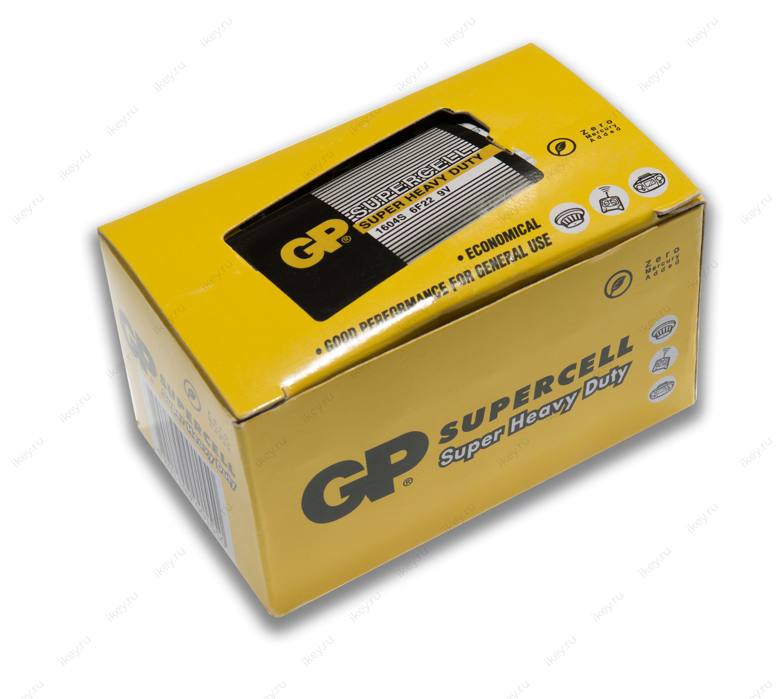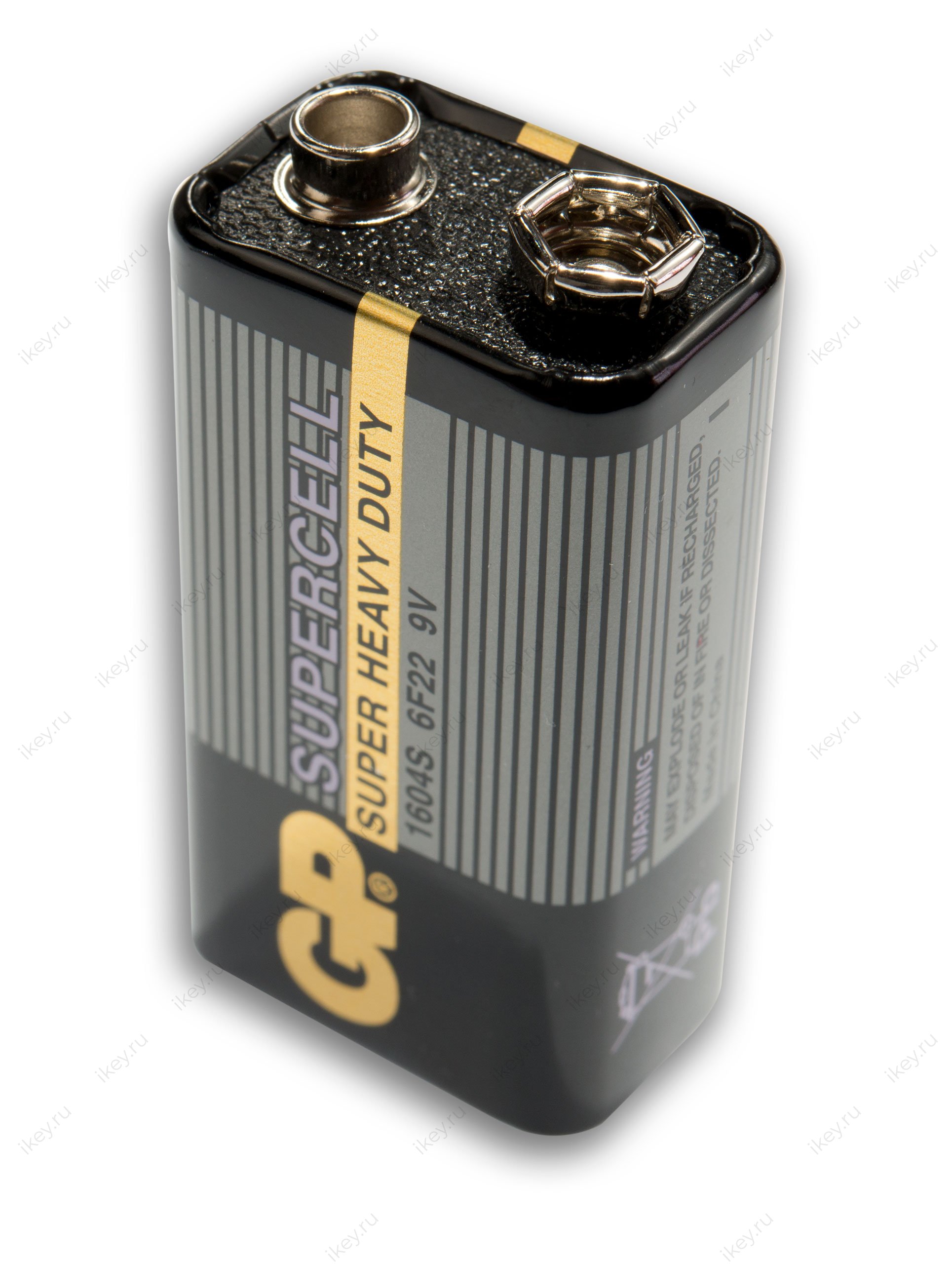 Угольно-цинковая батарейка Supercell 1604S/6F22 (26,5х17,5х48,5 мм) с солевым электролитом. Может долгое время работать в устройствах с низким и средним энергопотреблением: игрушках, светодиодных фонариках.